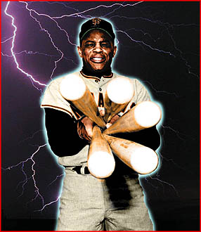 Again, a black and white image of the great "Say Hey Kid", Willie Mays, tinted.