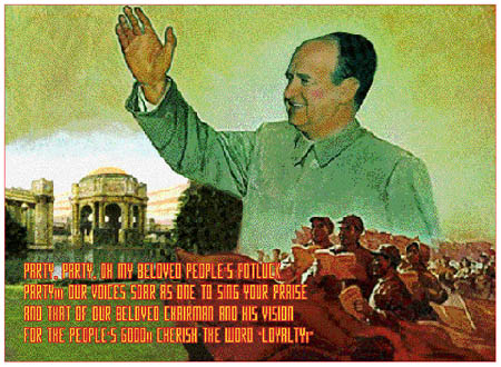 A "party" poster for a potluck gathering at the Exploratorium featuring our Glorious Chairman Director.... Ramona and Fred Frank 'n' Marina Party Line Wadelvis Act of God Vincent Mr. Tooth Decay Bob Miller